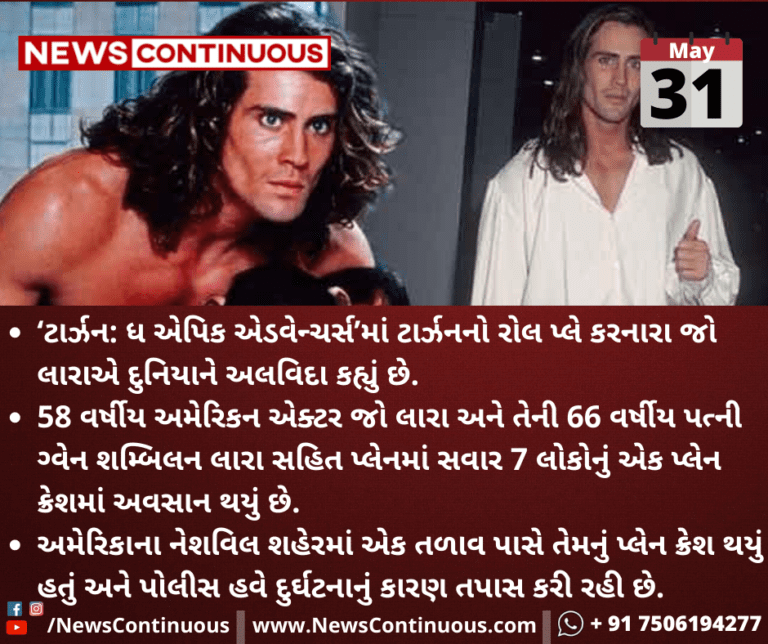 58 વર્ષીય અમેરિકન એક્ટર જો લારા અને તેની 66 વર્ષીય પત્ની ગ્વેન શમ્બિલન લારા સહિત પ્લેનમાં સવાર 7 લોકોનું એક પ્લેન ક્રેશમાં અવસાન થયું છે.