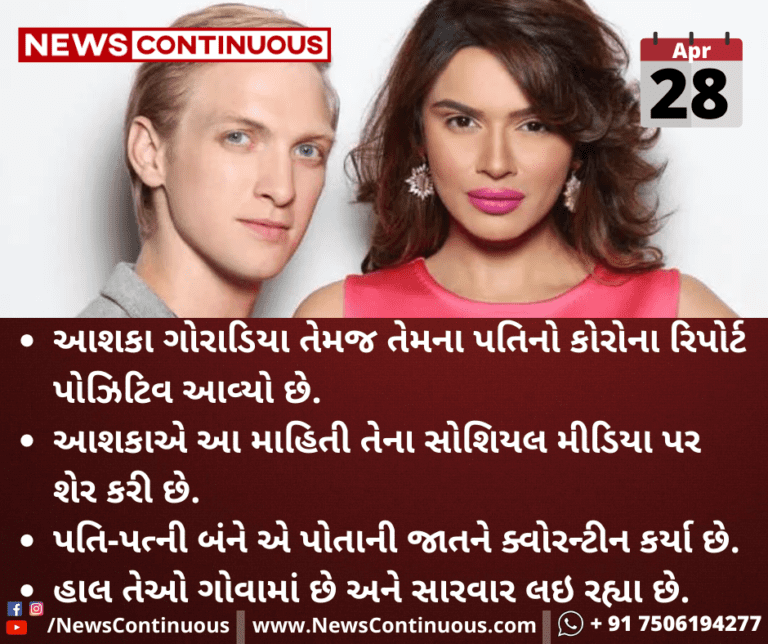 આશકા ગોરાડિયા તેમજ તેમના પતિનો કોરોના રિપોર્ટ પોઝિટિવ આવ્યો છે.