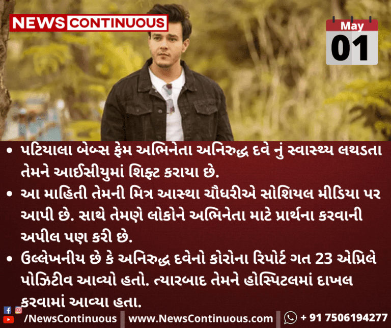 પટિયાલા બેબ્સ ફેમ અભિનેતા અનિરુદ્ધ દવે નું સ્વાસ્થ્ય લથડતા તેમને આઈસીયુમાં શિફ્ટ કરાયા છે.