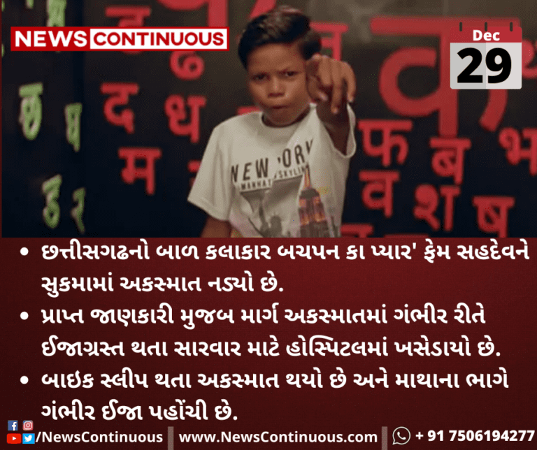 છત્તીસગઢનો બાળ કલાકાર 'બચપન કા પ્યાર' ફેમ સહદેવને સુકમામાં અકસ્માત નડ્યો છે.