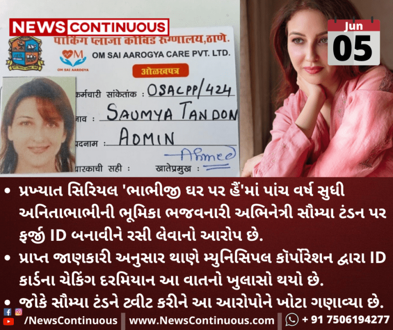 પ્રખ્યાત સિરિયલ 'ભાભીજી ઘર પર હૈં'માં પાંચ વર્ષ સુધી અનિતાભાભીની ભૂમિકા ભજવનારી અભિનેત્રી સૌમ્યા ટંડન પર ફર્જી ID બનાવીને રસી લેવાનો આરોપ છે.