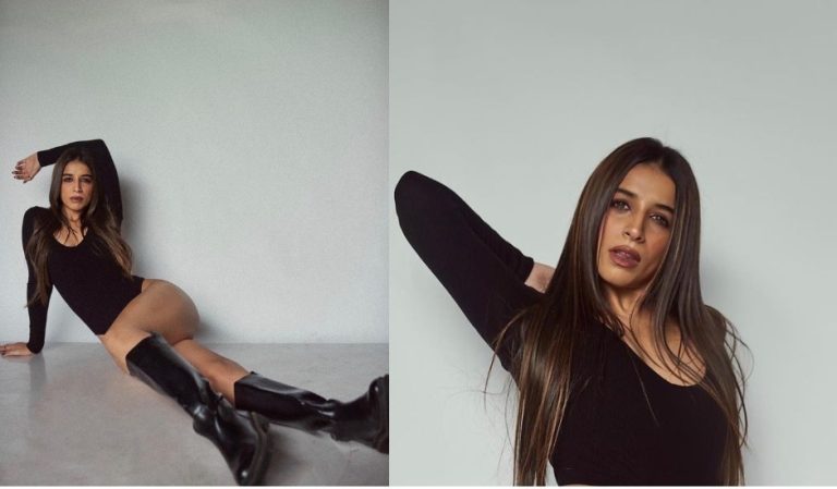તસવીરો માં અભિનેત્રી લાંબા પગને ફ્લોન્ટ કરતી જોવા મળી રહી છે. ફોટામાં બ્લેક મોનોકિની સાથે કાળા રંગ ના બૂટ પણ પહેર્યા છે.