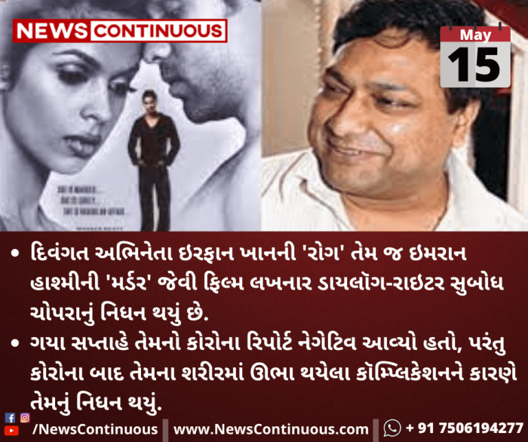 દિવંગત અભિનેતા ઇરફાન ખાનની 'રોગ' તેમ જ ઇમરાન હાશ્મીની 'મર્ડર' જેવી ફિલ્મ લખનાર ડાયલૉગ-રાઇટર સુબોધ ચોપરાનું નિધન થયું છે.