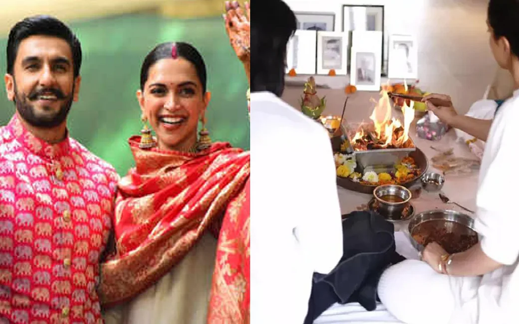 આ તસવીરોમાં રણવીર સિંહ અને દીપિકા પાદુકોણ ગૃહ પ્રવેશની(Grih pravesh) પૂજા કરતા જોવા મળે છે. તેમજ બંને હવનની અગ્નિમાં આહુતિ આપતા જોવા મળે છે.