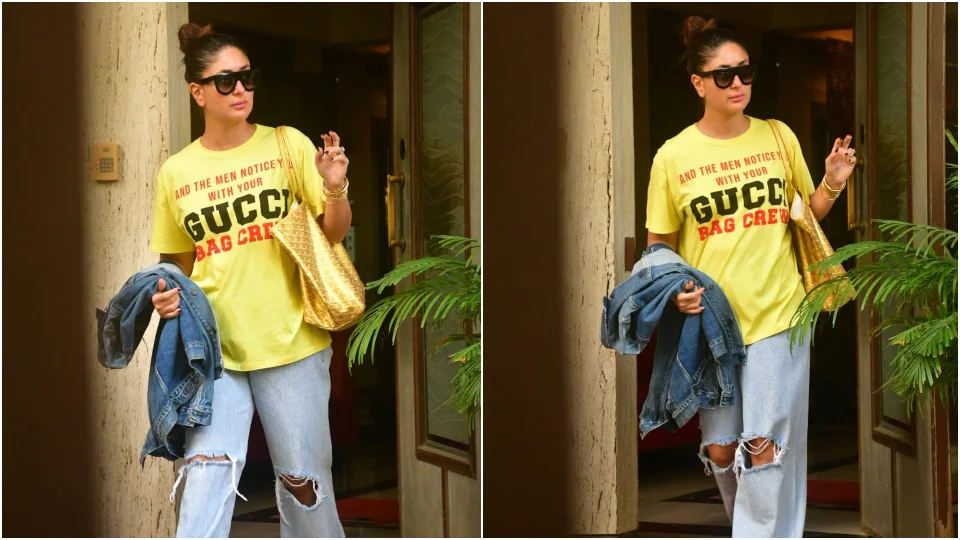 કરીના કપૂર ખાન હાલમાં મુંબઈ ખાતે જોવા મળી હતી. આ દરમિયાન તે ગુચ્ચી યેલો ટી-શર્ટ અને કેઝ્યુઅલ ટ્રાઉઝરમાં(Casual trousers) જાેવા મળી હતી. કરીના કપૂર ખાને પોતાના લુકને બ્લેક સન ગ્લાસ સાથે સ્ટાઈલ કર્યો હતો અને તેના વાળ ખુલ્લા રાખ્યા હતા. સાથે જ તેના હાથમાં કોફીનો ગ્લાસ હતો. કરીના કપૂર કેઝ્યુઅલ આઉટફિટ(Casual outfit) અને ફ્લેટ ફૂટવેરમાં સ્પોર્ટી લુક ફ્લોન્ટ કરતી જાેવા મળી હતી પરંતુ તેનાથી પણ વધારે તેની ટી-શર્ટે લોકોને આકર્ષિત કર્યા હતા. કરીનાની ગુચ્ચી યેલો ટી-શર્ટની કિંમત તમારા હોશ ઉડાવી દે તેવી હતી. આ ટી-શર્ટની કિંમત ૪૦,૦૦૦ રૂપિયા છે પરંતુ કરીનાનો મોંઘો લુક નેટીઝન્સને આકર્ષવામાં સફળ નહોતો રહ્યો. ઘણા યુઝર્સે તેને મોંઘી ગુચ્ચી ટી-શર્ટને લઈને ટ્રોલ કરી હતી.