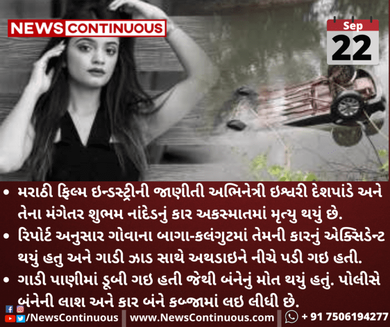 મરાઠી ફિલ્મ ઇન્ડસ્ટ્રીની જાણીતી અભિનેત્રી ઇશ્વરી દેશપાંડે અને તેના મંગેતર શુભમ નાંદેડનું કાર અકસ્માતમાં મૃત્યુ થયું છે.