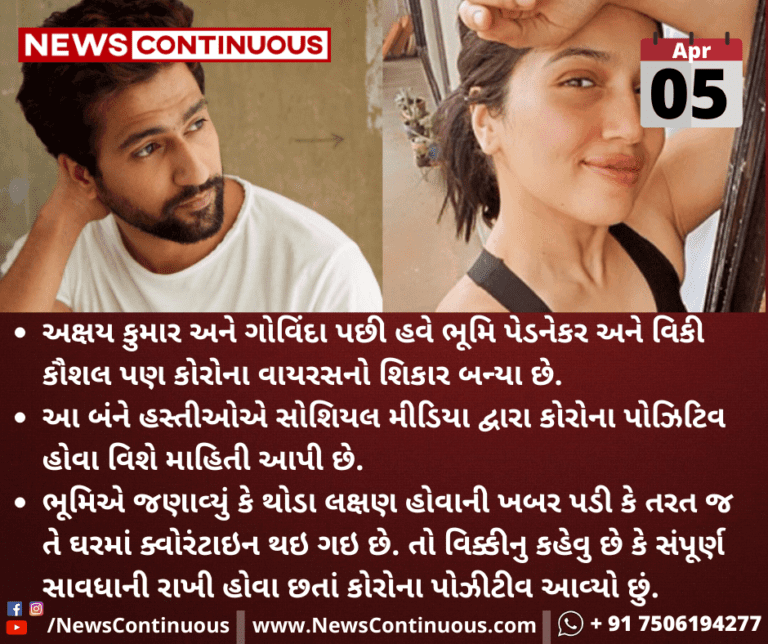 અક્ષય કુમાર અને ગોવિંદા પછી હવે ભૂમિ પેડનેકર અને વિકી કૌશલ પણ કોરોના વાયરસનો શિકાર બન્યા છે.