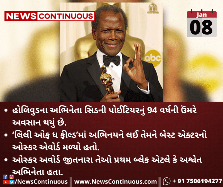 હોલિવુડના અભિનેતા સિડની પોઈટિયરનું 94 વર્ષની ઉંમરે અવસાન થયું છે.