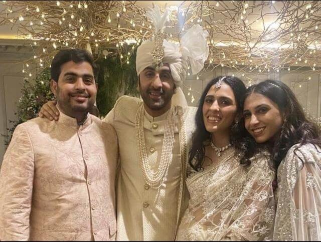 આ પહેલા રણબીર અને આલિયા(Ranbir kapoor-Alia Bhatt Wedding)ના લગ્નમાંથી આકાશ અને શ્લોકા અંબાણીની વધુ એક તસવીર સામે આવી હતી, જેમાં બંને વરરાજા રણબીર કપૂર સાથે પોઝ આપતા જોવા મળ્યા હતા.