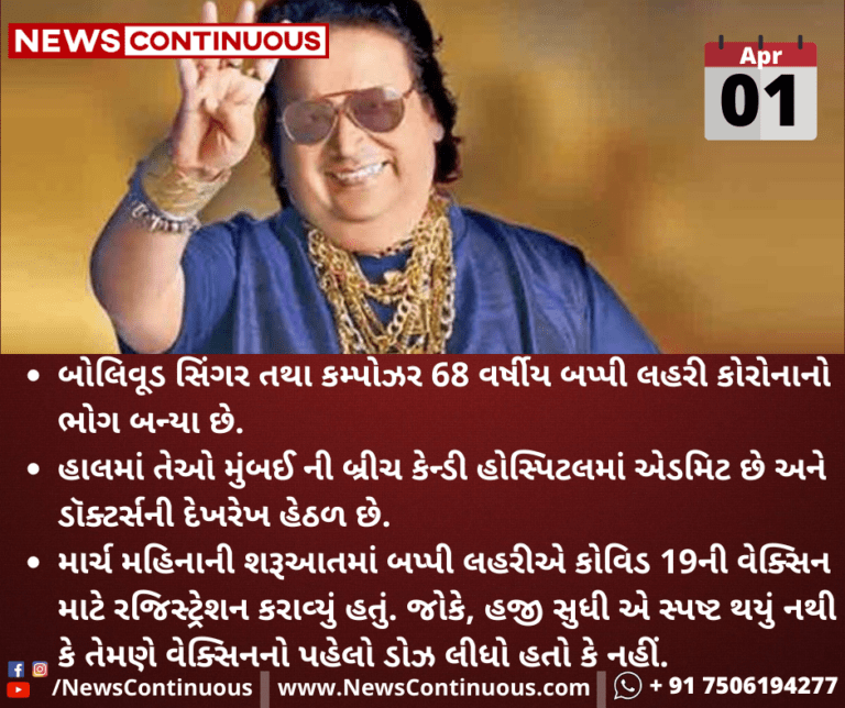 - બોલિવૂડ સિંગર તથા કમ્પોઝર 68 વર્ષીય બપ્પી લહરી કોરોનાનો ભોગ બન્યા છે.