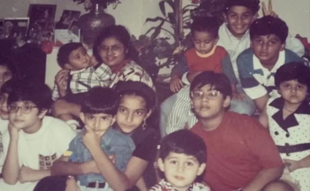 તમને જણાવી દઈએ કે આ ફોટોમાં તમે રણબીર કપૂર, સોનમ કપૂર, અંશુલા કપૂર, હર્ષવર્ધન કપૂર અને અર્જુન કપૂરને જોઈ શકો છો. તો ચાલો સ્ટાર્ટ કરીએ નીચે થી ફોટામાં,  બ્લેક ડ્રેસમાં સોનમ કપૂર (Sonam Kapoor)છે તેના ખોળામા તેનો નાનો ભાઈ હર્ષવર્ધન કપૂર (Harshvardhan Kapoor)છે.તેમજ, અર્જુન કપૂર(Arjun Kapoor) તેની બાજુમાં લાલ ટી-શર્ટ પહેરીને અને ચશ્મા પહેરીને બેઠો છે. સોનમ કપૂરની પાછળ અંશુલા કપૂર(Anshula kapoor)છે તેને એક બાળકને ખોળામાં લીધો છે. તેની  બીજી તરફ, રણબીર કપૂર(Ranbir Kapoor) છે  જેણે પાછળ હાથ રાખીને વિજય ની(Victory sign)) નિશાની બનાવી છે.