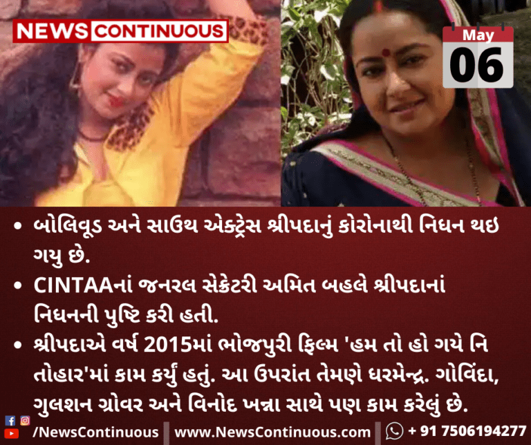 બોલિવૂડ અને સાઉથ એક્ટ્રેસ શ્રીપદાનું કોરોનાથી નિધન થઇ ગયુ છે.
