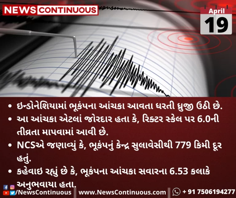 NCSએ જણાવ્યું કે, ભૂકંપનું કેન્દ્ર સુલાવેસીથી(Sulawesi) 779 કિમી દૂર હતું.