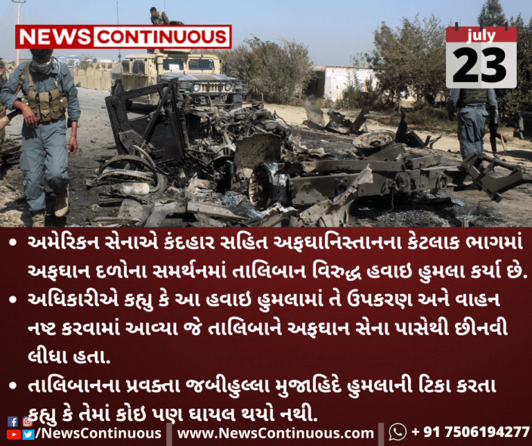 અમેરિકન સેનાએ કંદહાર સહિત અફઘાનિસ્તાનના કેટલાક ભાગમાં અફઘાન દળોના સમર્થનમાં તાલિબાન વિરુદ્ધ હવાઇ હુમલા કર્યા છે.