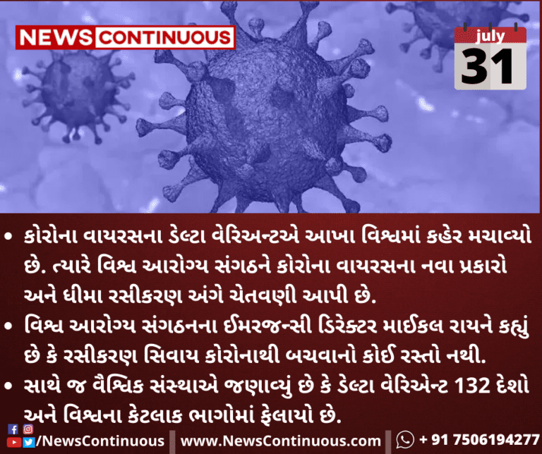 સાથે જ વૈશ્વિક સંસ્થાએ જણાવ્યું છે કે ડેલ્ટા વેરિએન્ટ 132 દેશો અને વિશ્વના કેટલાક ભાગોમાં ફેલાયો છે.