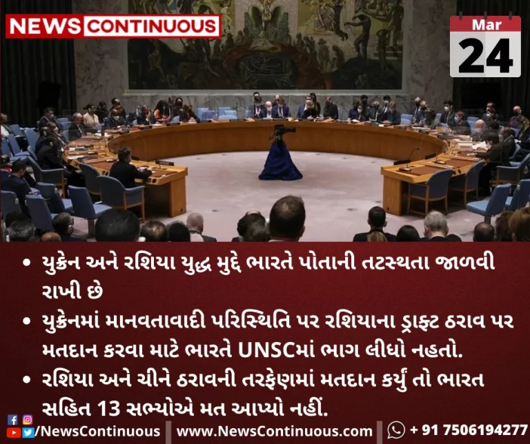 યુક્રેનમાં માનવતાવાદી પરિસ્થિતિ પર રશિયાના ડ્રાફ્ટ ઠરાવ પર મતદાન કરવા માટે ભારતે UNSCમાં ભાગ લીધો નહતો.