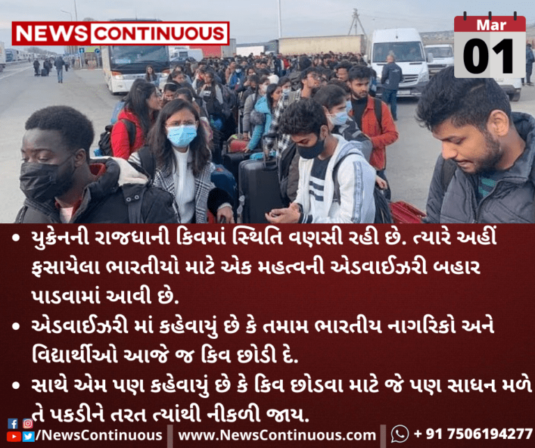 એડવાઈઝરી માં કહેવાયું છે કે તમામ ભારતીય નાગરિકો અને વિદ્યાર્થીઓ આજે જ કિવ છોડી દે.