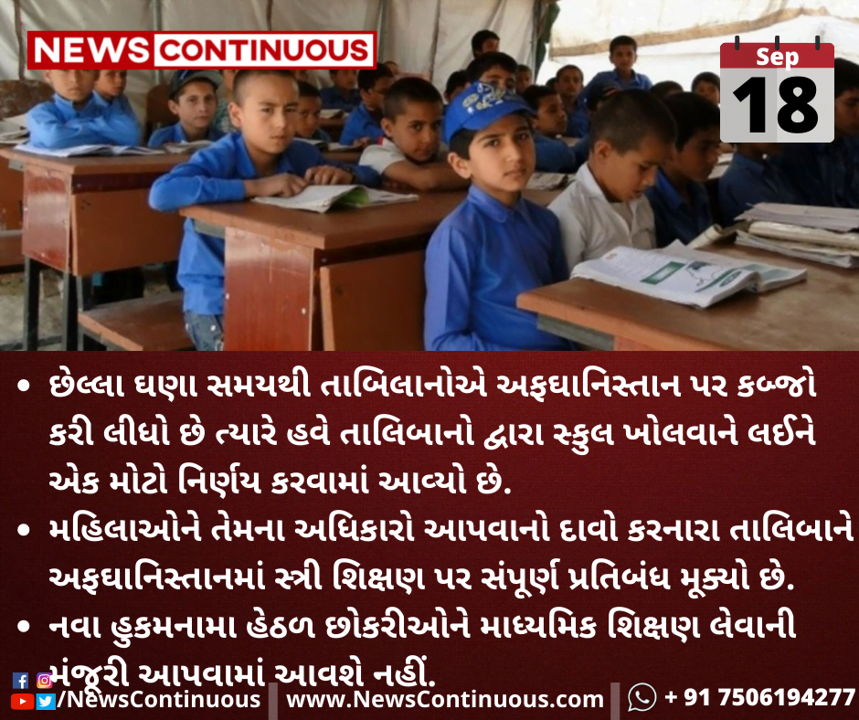 છેલ્લા ઘણા સમયથી તાબિલાનોએ અફઘાનિસ્તાન પર કબ્જો કરી લીધો છે ત્યારે હવે તાલિબાનો દ્વારા સ્કુલ ખોલવાને લઈને એક મોટો નિર્ણય કરવામાં આવ્યો છે.