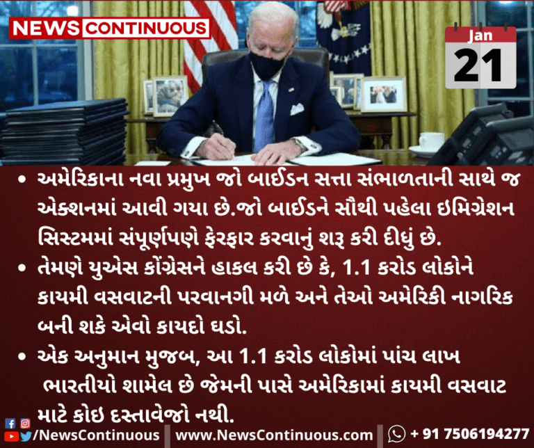 જો બાઈડને યુએસ કોંગ્રેસને હાકલ કરી છે કે, 1.1 કરોડ લોકોને કાયમી વસવાટની પરવાનગી મળે અને તેઓ અમેરિકી નાગરિક બની શકે એવો કાયદો ઘડો.