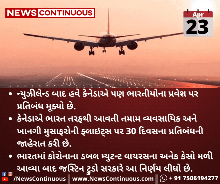 કેનેડાએ ભારત તરફથી આવતી તમામ વ્યવસાયિક અને ખાનગી મુસાફરોની ફ્લાઇટ્સ પર 30 દિવસના પ્રતિબંધની જાહેરાત કરી છે.