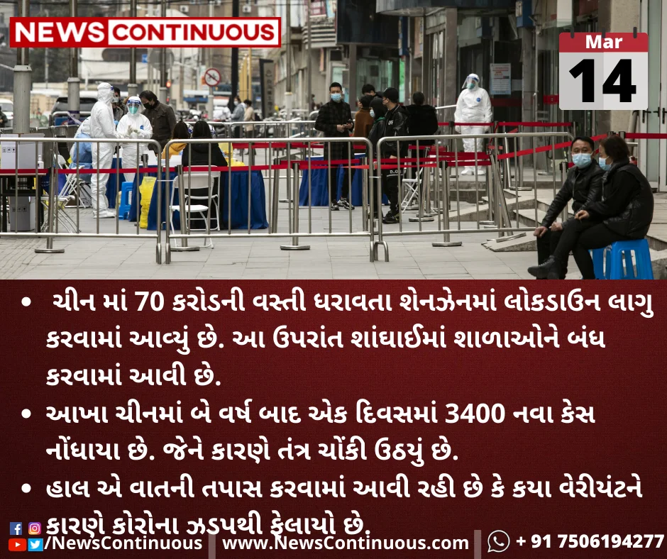 ચીન માં 70 કરોડની વસતી ધરાવતા શેનઝેનમાં લોકડાઉન લાગુ કરવામાં આવ્યું છે. આ ઉપરાંત શાંઘાઈમાં શાળાઓને બંધ કરવામાં આવી છે.
