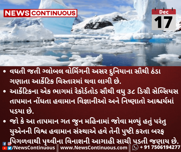 વધતી જતી ગ્લોબલ વોર્મિગની અસર દુનિયાના સૌથી ઠંડા ગણાતા આર્કેટિક વિસ્તારમાં થવા લાગી છે.