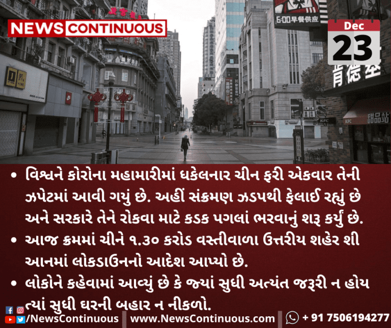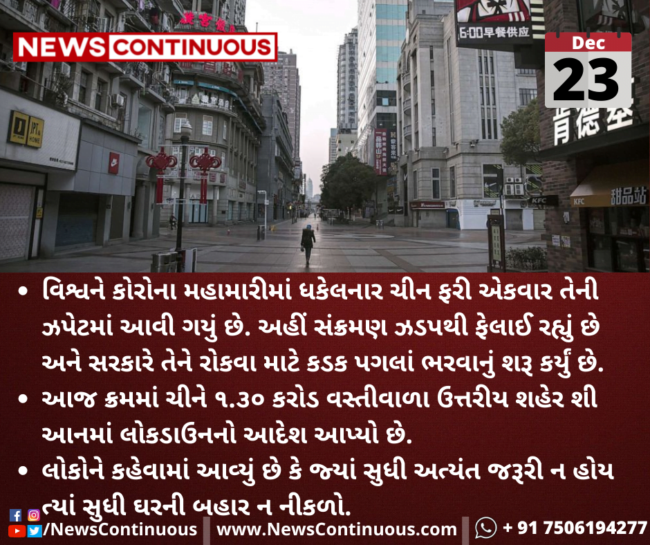 આજ ક્રમમાં ચીને ૧.૩૦ કરોડ વસ્તીવાળા ઉત્તરીય શહેર શી આનમાં લોકડાઉનનો આદેશ આપ્યો છે.