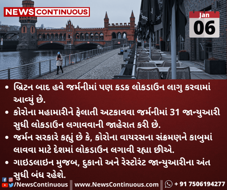 કોરોના મહામારીને ફેલાતી અટકાવવા જર્મનીમાં 31 જાન્યુઆરી સુધી લોકડાઉન લગાવવાની જાહેરાત કરી છે.