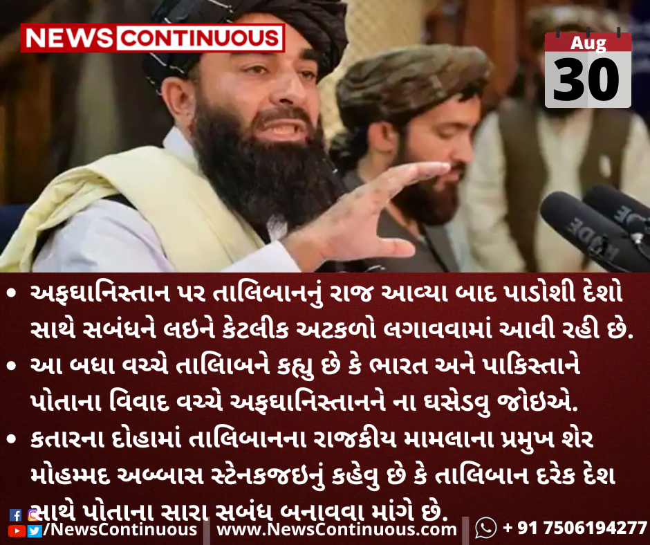 આ બધા વચ્ચે તાલિાબને કહ્યુ છે કે ભારત અને પાકિસ્તાને પોતાના વિવાદ વચ્ચે અફઘાનિસ્તાનને ના ઘસેડવુ જોઇએ.