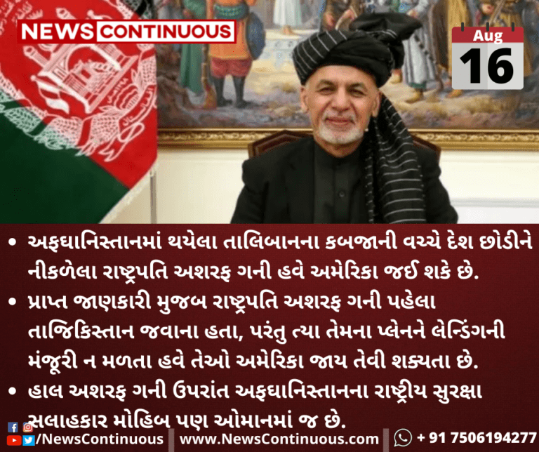 હાલ અશરફ ગની ઉપરાંત અફઘાનિસ્તાનના રાષ્ટ્રીય સુરક્ષા સલાહકાર મોહિબ પણ ઓમાનમાં જ છે.
