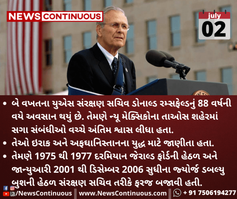 બે વખતના યુએસ સંરક્ષણ સચિવ ડોનાલ્ડ રમ્સફેલ્ડનું 88 વર્ષની વયે અવસાન થયું છે.
