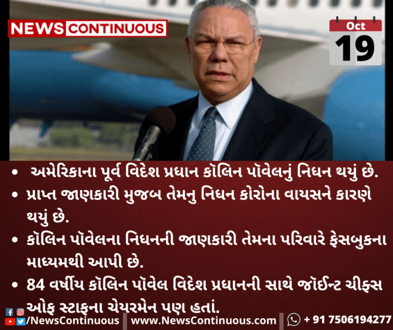 અમેરિકાના પૂર્વ વિદેશ પ્રધાન કૉલિન પૉવેલનું નિધન થયું છે.