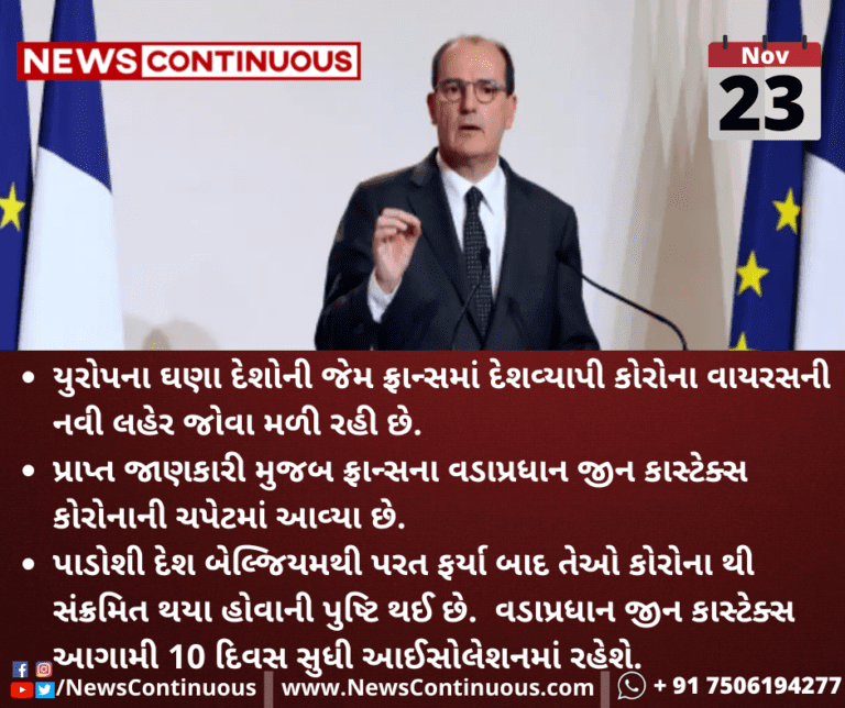 પ્રાપ્ત જાણકારી મુજબ ફ્રાન્સના વડાપ્રધાન જીન કાસ્ટેક્સ કોરોનાની ચપેટમાં આવ્યા છે.