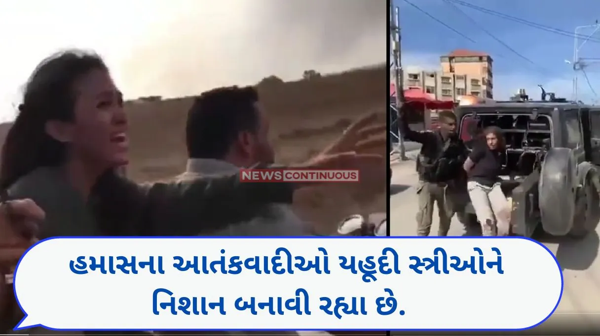 Israel war : ગત 24 કલાકમાં ઇઝરાયેલ અને હમાસ ( Hamas ) વચ્ચે યુદ્ધ ચરમશીમાએ પહોંચી રહ્યું છે. ત્યારે સોશિયલ મીડિયા પર એવા અનેક વિડીયો વાયરલ ( Video viral ) થયા છે જેને જોઈને કોઈપણ વ્યક્તિ વિચલિત થઈ શકે છે. ઇઝરાયેલ સ્ત્રીઓ ( Israeli women ) જે ગાઝા પટ્ટી ( Gaza Strip ) અને અન્ય વિસ્તારમાં રહે છે તેમને નિશાન બનાવીને તેમનું અપહરણ ( Abduction ) કરવામાં આવી રહ્યું છે. અમુક એવા વિડીયો વાયરલ ( Viral Video ) થયા છે જેમાં સ્ત્રીની હત્યા ( murder ) કર્યા પછી તેને આખા શહેરમાં ફેરવવામાં આવી. આ ઉપરાંત એવા વિડીયો દેખાઈ રહ્યા છે જેમાં પરિવારની હાજરીમાં સ્ત્રીનું અપહરણ કરવામાં આવી રહ્યું છે. સોશિયલ મીડિયા પર આ વિડીયો સંદર્ભે ફિટકારની ભાવના જોવા મળી રહી છે.
