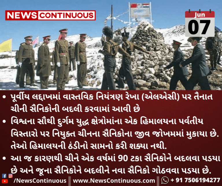 પૂર્વીય લદ્દાખમાં વાસ્તવિક નિયંત્રણ રેખા (એલએસી) પર તૈનાત ચીની સૈનિકોની બદલી કરવામાં આવી છે