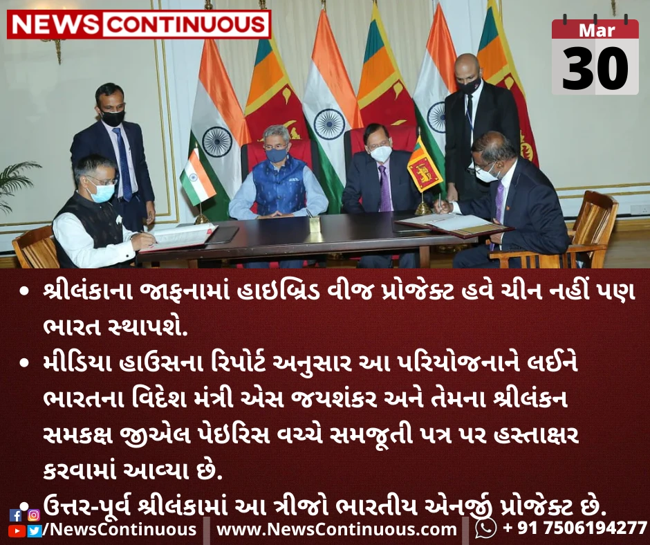 શ્રીલંકાના જાફનામાં હાઇબ્રિડ વીજ પ્રોજેક્ટ હવે ચીન નહીં પણ ભારત સ્થાપશે.