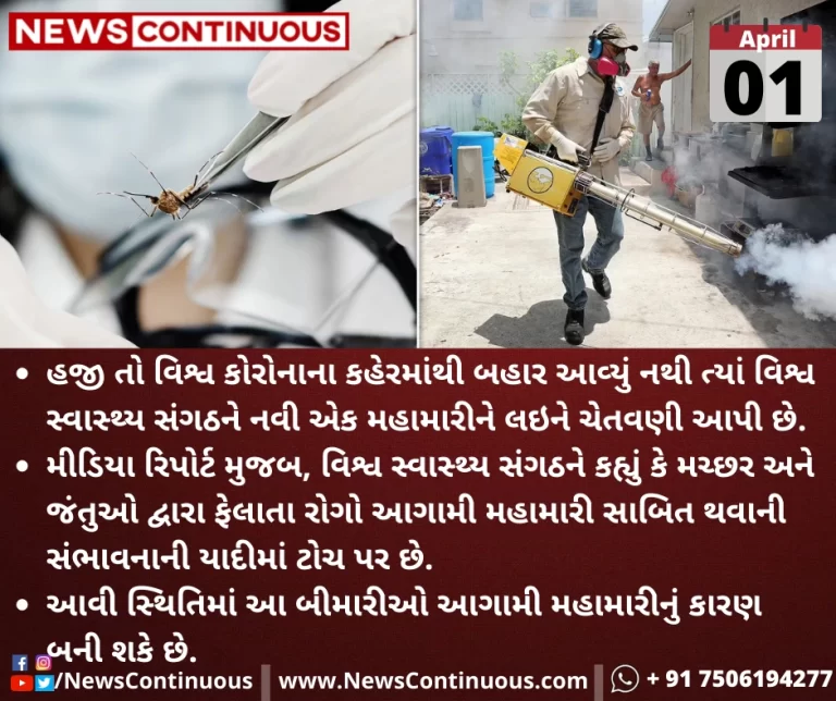 મીડિયા રિપોર્ટ મુજબ, વિશ્વ સ્વાસ્થ્ય સંગઠને કહ્યું કે મચ્છર અને જંતુઓ દ્વારા ફેલાતા રોગો આગામી મહામારી સાબિત થવાની સંભાવનાની યાદીમાં ટોચ પર છે.