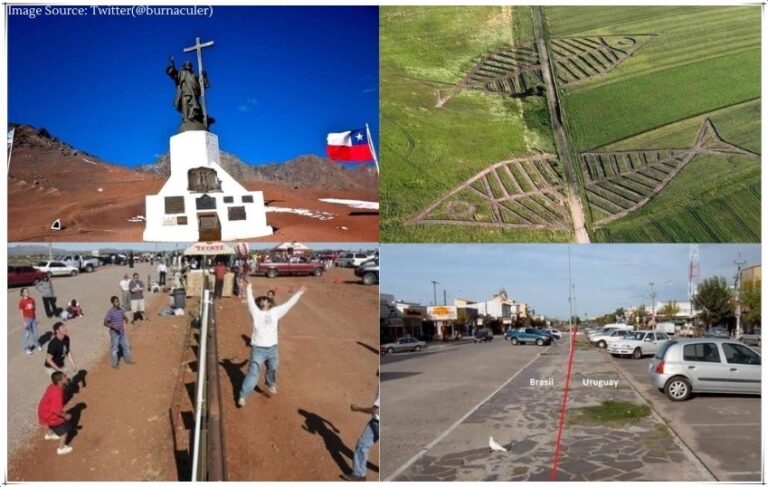 આર્જેન્ટિના, પુરૂગ્વે અને બ્રાઝિલ(Argentina, Peru and Brazil) : દક્ષિણ અમેરિકાના આ ત્રણ દેશોની આ સરહદ પણ ઘણી રસપ્રદ છે. આ તે જગ્યા છે જ્યાં ઇઝ્ઝાઉ અને પરાના નદીઓ મળે છે. તેને ટ્રિપલ ફ્રન્ટિયર પણ કહેવામાં આવે છે.