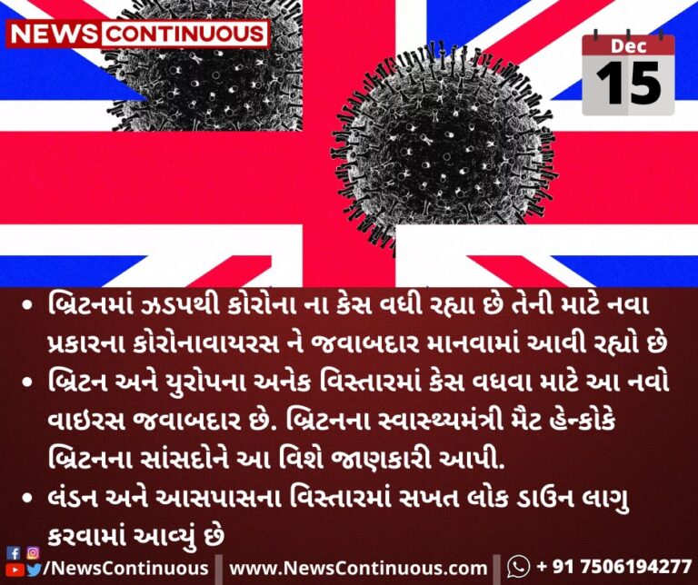 બ્રિટનમાં ઝડપથી કોરોના ના કેસ વધી રહ્યા છે તેની માટે નવા પ્રકારના કોરોનાવાઇરસને જવાબદાર માનવામાં આવી રહ્યો છે