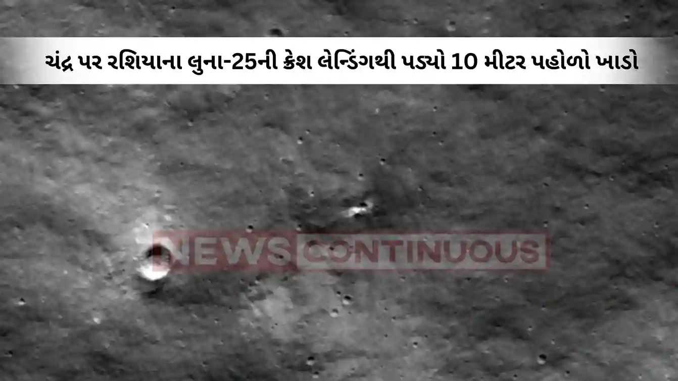 NASAના Lunar Reconnaissance Orbiter (LRO) એ રશિયન લુના-25 મિશનના ક્રેશ સ્થળની તસવીર લીધી છે. ચંદ્રની સપાટી પર એક નવો ખાડો દેખાય છે. જે લુના-25ની ટક્કરથી બનેલ હોય તેવું લાગી રહ્યું છે. નાસાએ ટ્વિટ કર્યું કે આ ખાડો લગભગ 10 મીટર વ્યાસનો છે. એટલે લગભગ 33 ફૂટ. આ એક ઈમ્પૅક્ટ ખાડો છે. આ કુદરતી રીતે રચાયેલ ખાડો નથી.