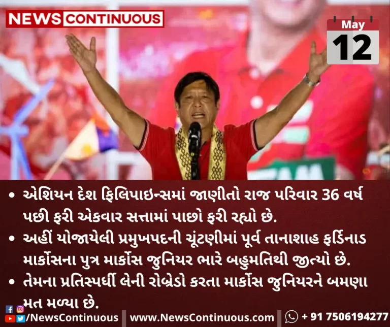 એશિયન દેશ ફિલિપાઇન્સ(Philippines)માં જાણીતો રાજ પરિવાર 36 વર્ષ પછી ફરી એકવાર સત્તામાં પાછો ફરી રહ્યો છે.