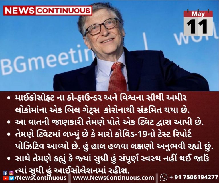 માઈક્રોસોફ્ટ (Microsoft)ના કો-ફાઉન્ડર અને વિશ્વના સૌથી અમીર લોકોમાંના એક બિલ ગેટ્સ (Bill Gates) કોરોના(Covid19)થી સંક્રમિત થયા છે.