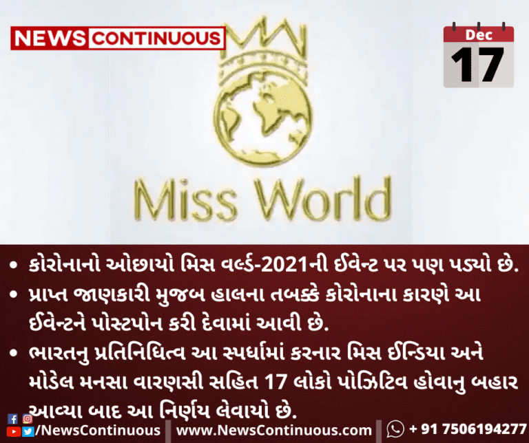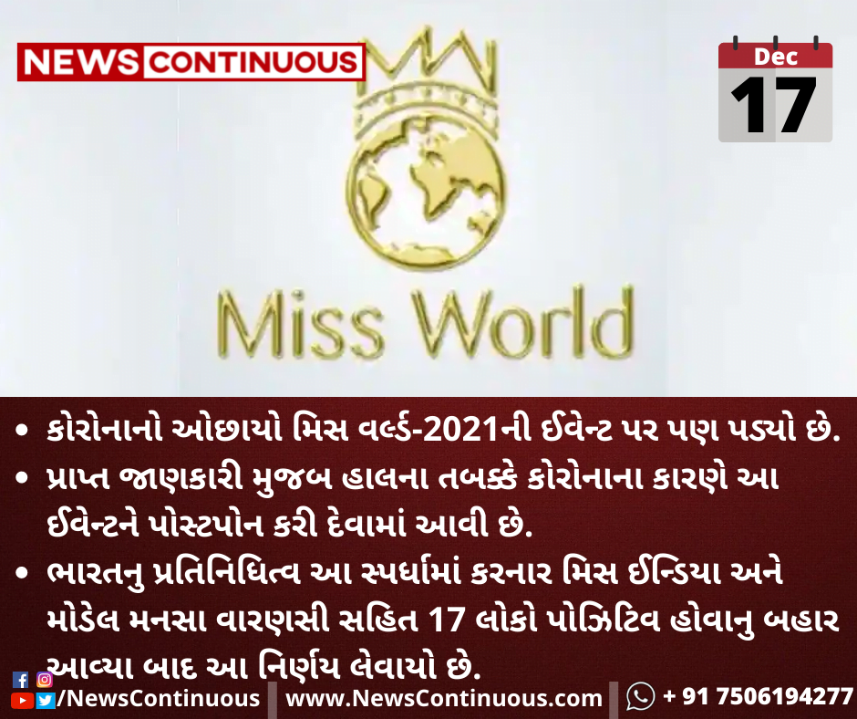 કોરોનાનો ઓછાયો મિસ વર્લ્ડ-2021ની ઈવેન્ટ પર પણ પડ્યો છે.