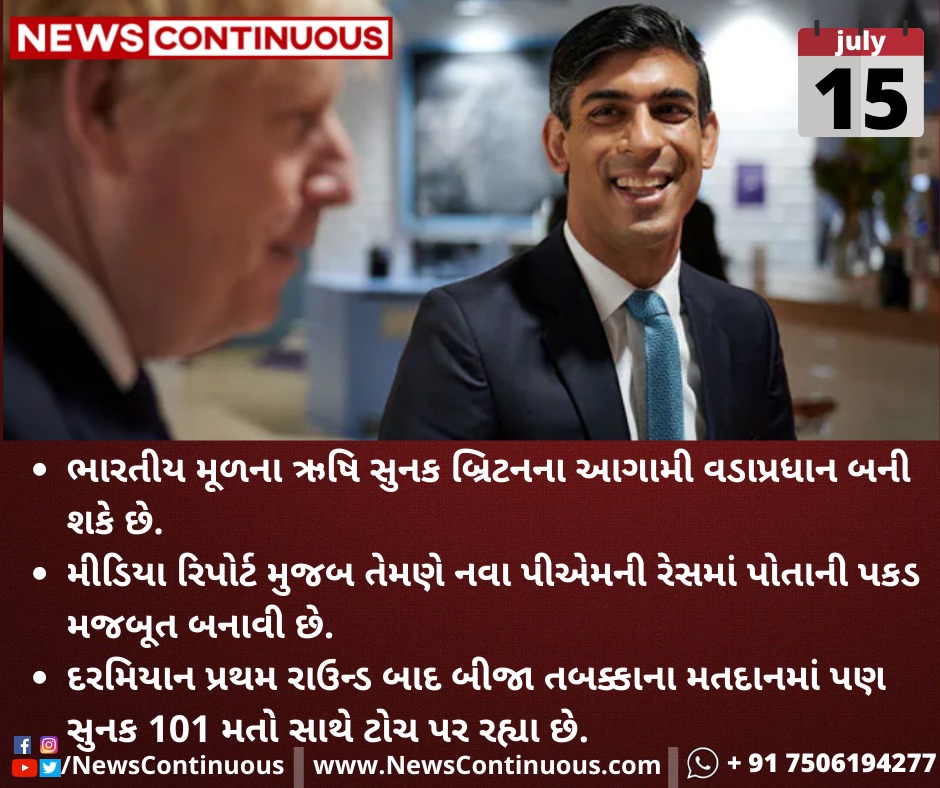 ભારતીય મૂળના(Indian origin) ઋષિ સુનક(Rishi Sunak) બ્રિટનના આગામી વડાપ્રધાન(Britain PM) બની શકે છે.