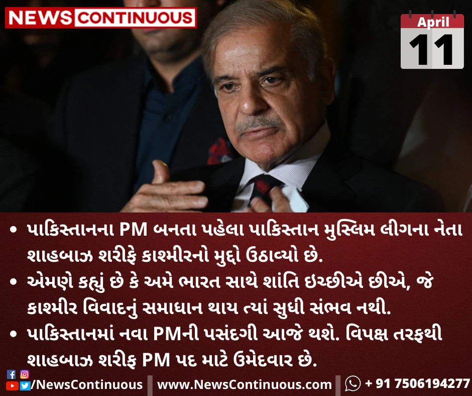 પાકિસ્તાનના PM બનતા પહેલા પાકિસ્તાન મુસ્લિમ લીગના નેતા શાહબાઝ શરીફે કાશ્મીરનો મુદ્દો ઉઠાવ્યો છે.