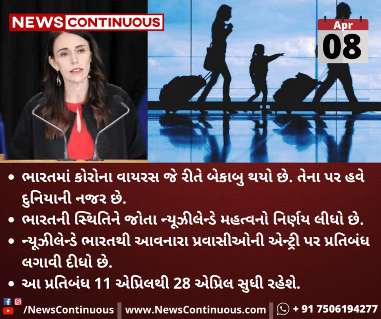 ન્યૂઝીલેન્ડે ભારતથી આવનારા પ્રવાસીઓની એન્ટ્રી પર પ્રતિબંધ લગાવી દીધો છે.