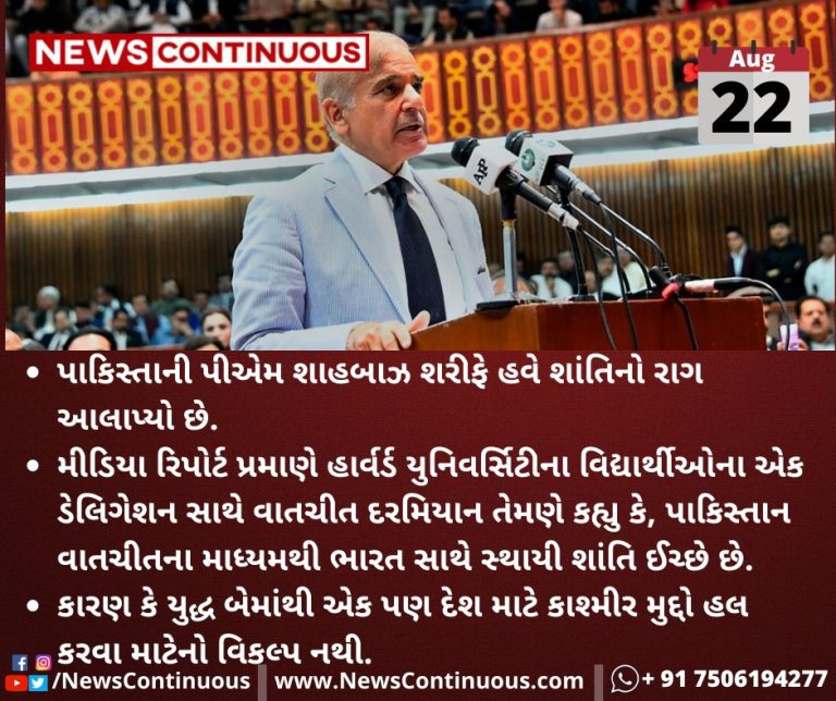 પાકિસ્તાની પીએમ(Pakistani PM) શાહબાઝ શરીફે(Shahbaz Sharif) હવે શાંતિનો રાગ આલાપ્યો છે.