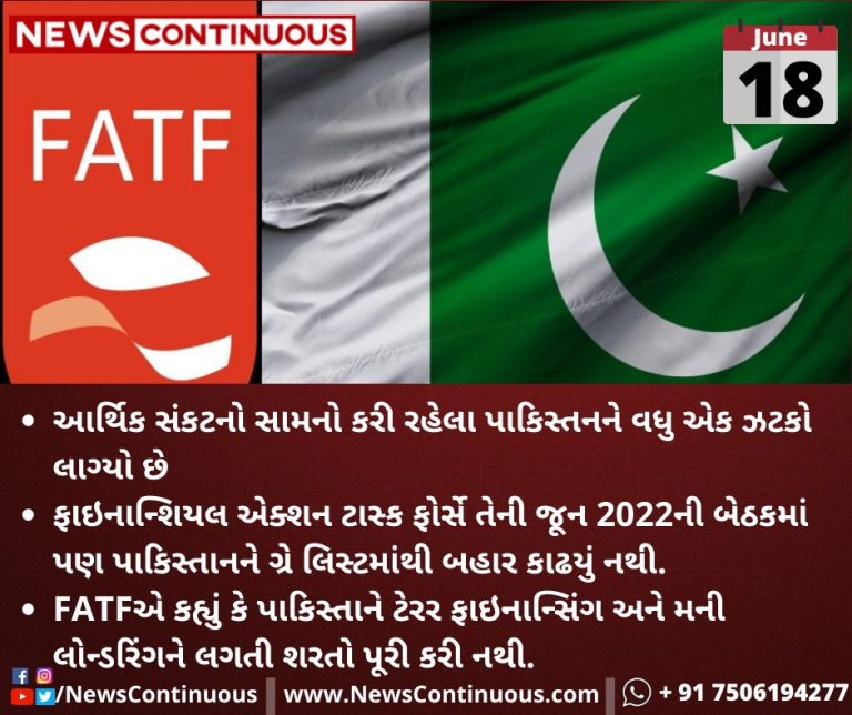 ફાઇનાન્શિયલ એક્શન ટાસ્ક ફોર્સે(Financial Action Task Force) તેની જૂન 2022ની બેઠકમાં પણ પાકિસ્તાનને ગ્રે લિસ્ટમાંથી(gray list) બહાર કાઢયું નથી.