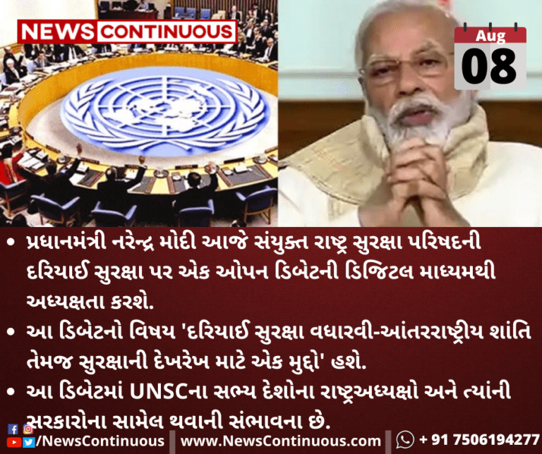 પ્રધાનમંત્રી નરેન્દ્ર મોદી આજે સંયુક્ત રાષ્ટ્ર સુરક્ષા પરિષદ (UNSC)ની દરિયાઈ સુરક્ષા પર એક ઓપન ડિબેટની ડિજિટલ માધ્યમથી અધ્યક્ષતા કરશે.