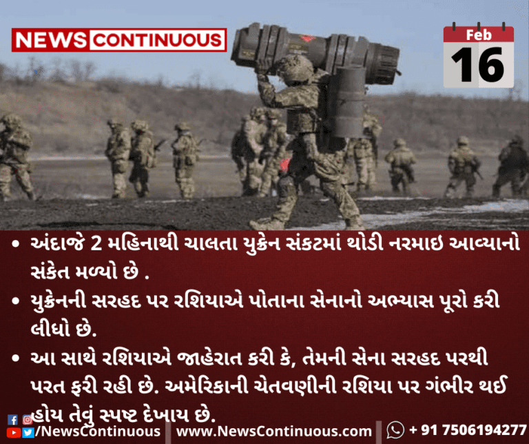 અંદાજે 2 મહિનાથી ચાલતા યુક્રેન સંકટમાં થોડી નરમાઇ આવ્યાનો પહેલો સંકેત મળ્યો છે .